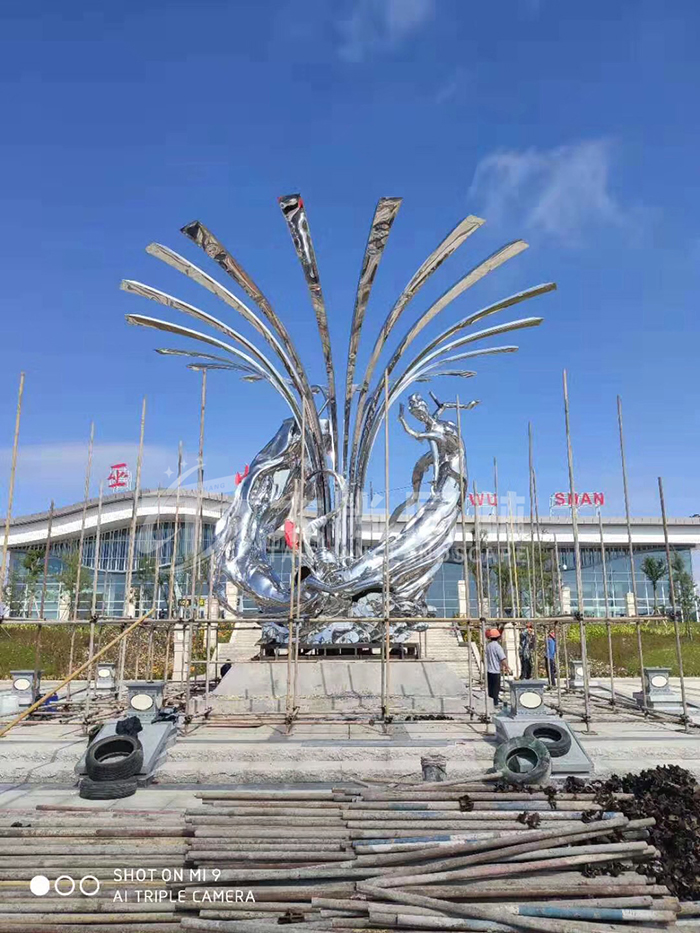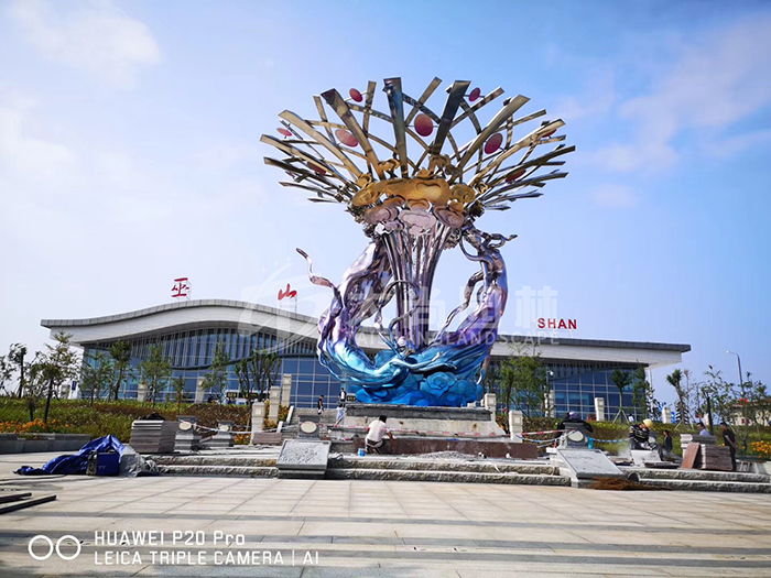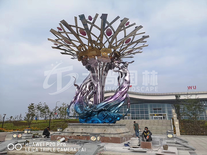 仙女雕塑以漂亮的服飾、優美的飄姿展示滿懷深情、喜迎中外賓客的精、氣、神